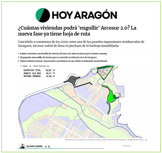 Zaragoza sigue creciendo hacia el suroeste y Arcosur vuelve a colocarse en el centro del mapa urbanístico de la ciudad.