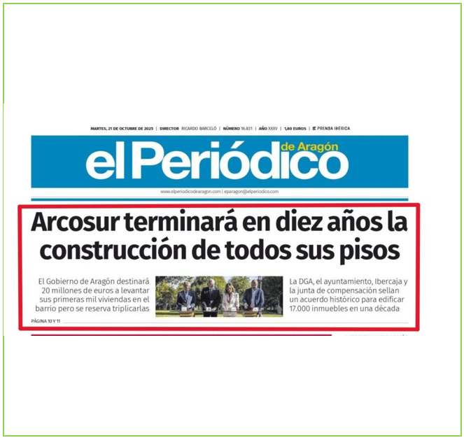 Nueva portada de El Periódico de Aragón dedicada a ARCOSUR ZARAGOZA.