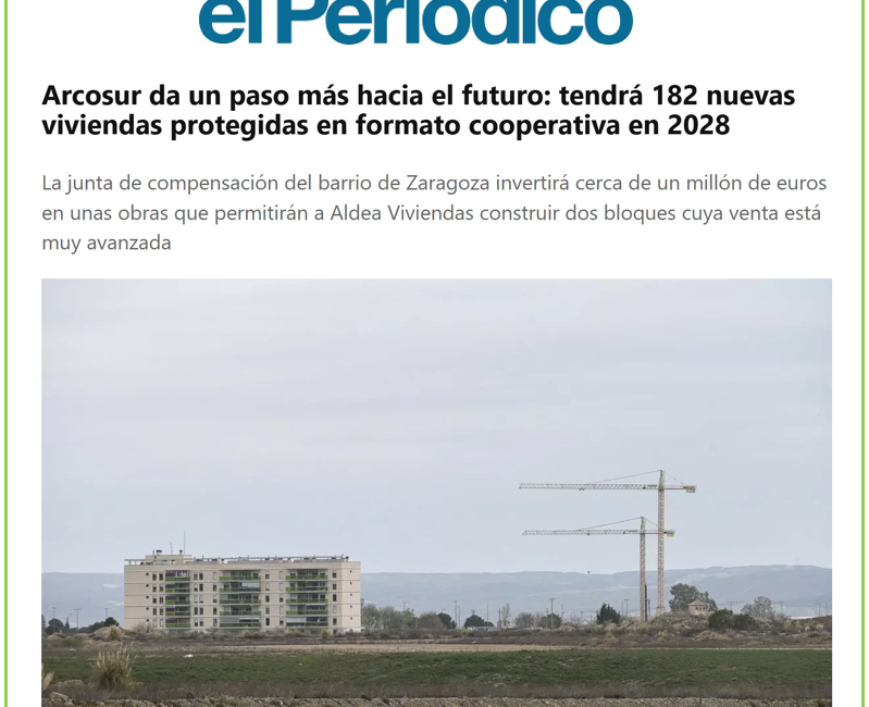 El Periódico de Aragón publica que la Junta de Compensación de ARCOSUR ZARAGOZA ha presentado en el Ayuntamiento de Zaragoza el recinto 4 de la FASE 2 SUR del Proyecto de Urbanización.