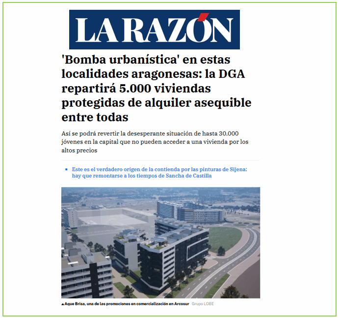 ARCOSUR ZARAGOZA es pieza clave para el objetivo de la DGA del programa «Mas vivienda, mejor empleo».