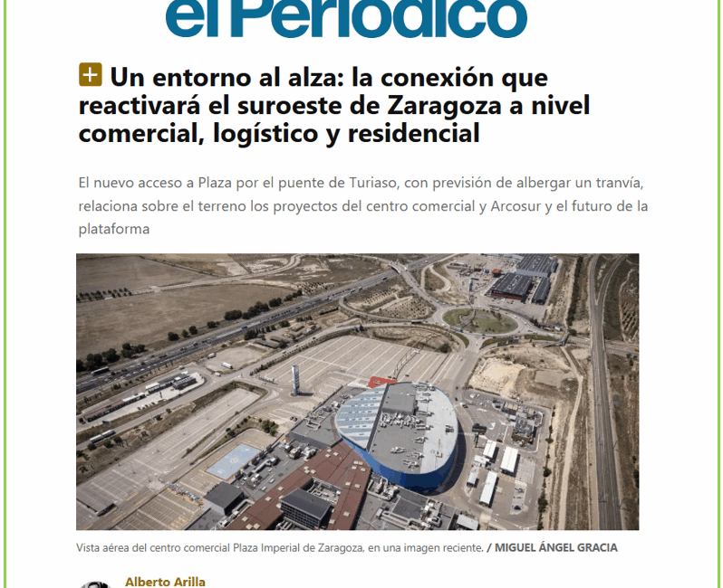 El nuevo acceso a Plaza por el puente de Turiaso, con previsión de albergar un tranvía, relaciona sobre el terreno los proyectos del centro comercial y ARCOSUR ZARAGOZA y el futuro de la plataforma