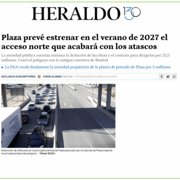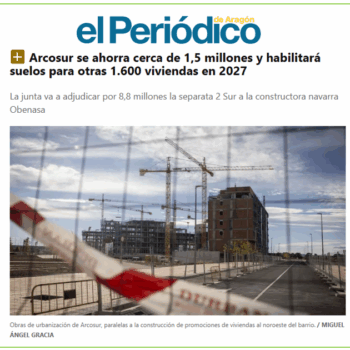 Artículo de El Periódico de Aragón que recoge la adjudicación a Obras Especiales de las obras de...