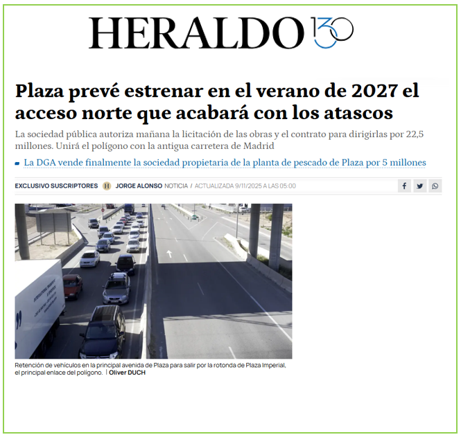 PLAZA autoriza la licitación de las obras y el contrato para dirigirlas por 22,5 millones. Unirá el polígono con la antigua carretera de Madrid en el punto de la turborotonda de ARCOSUR ZARAGOZA.