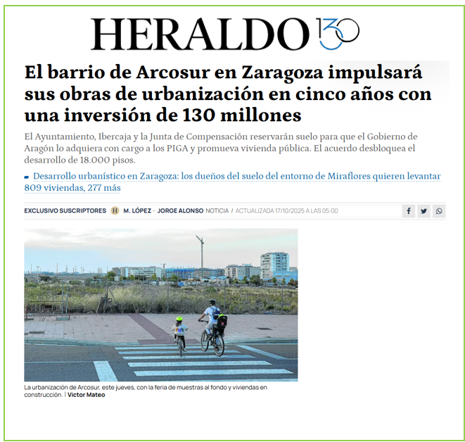 En el artículo, Heraldo de Aragón desgrana el protocolo que se firma entre Ayuntamiento de Zaragoza, Ibercaja, Gobierno de Aragón y ARCOSUR ZARAGOZA.